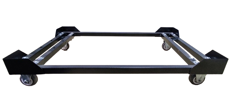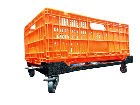Carrinho para movimentação de caixas, contentores, engradados, bandejas, equipamentos ou móveis de base plana, com indicação para uso interno.